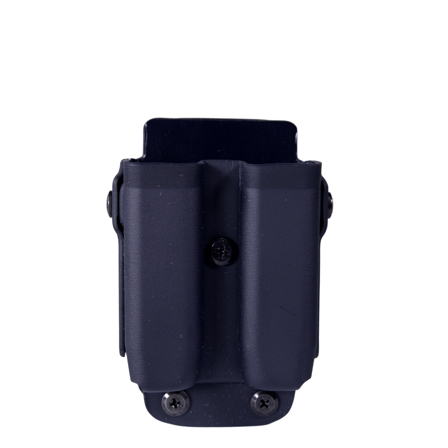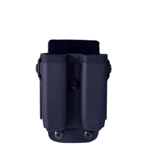 The Uniform Line Double Pistol Mag Carrier is made from aircraft grade Kydex making it durable with a sleek duty appearance. It is offered in 3 sizes, allowing for a wider range of mags per model. The bullets out design creates our slimmest footprint for two mags, which is the most efficient use of space. There are three points of adjustment for a dialed retention in each mag. It has a flared mag well and raised sweat shield for easier mag indexing. It comes shipped either with HSGI® universal clips, or a dedicated PLM (Push Lock Mechanism) belt mount option. It has a hole pattern that allows for diverse mounts and cants with other Comp-Tac accessories.