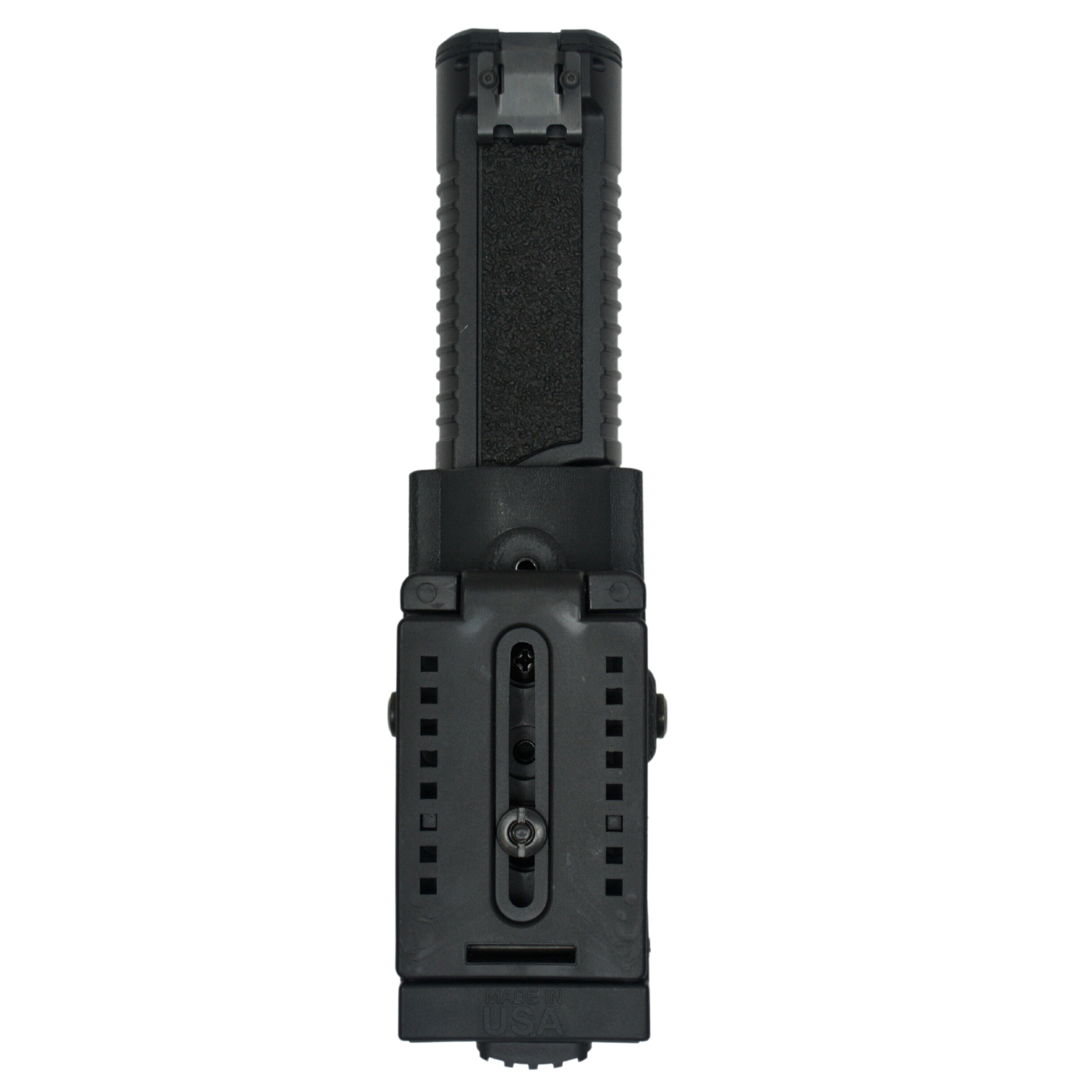 The Uniform Flashlight Carrier is a Kydex flashlight carrier that has a slick duty appearance. It is designed with a slim profile that only uses 1 row of MOLLE. The carrier features retention adjustment which allows a secure fit based on user preference. The Uniform Flashlight Carrier is also custom fitted to various flashlight sizes and is offered to fit the Protac 2.0, Stinger, and more. It comes shipped either with HSGI Universal Clips, or a dedicated PLM (Push Lock Mechanism) belt mount option. The hole pattern allows for diverse mounts and cants with other Comp-Tac accessories.